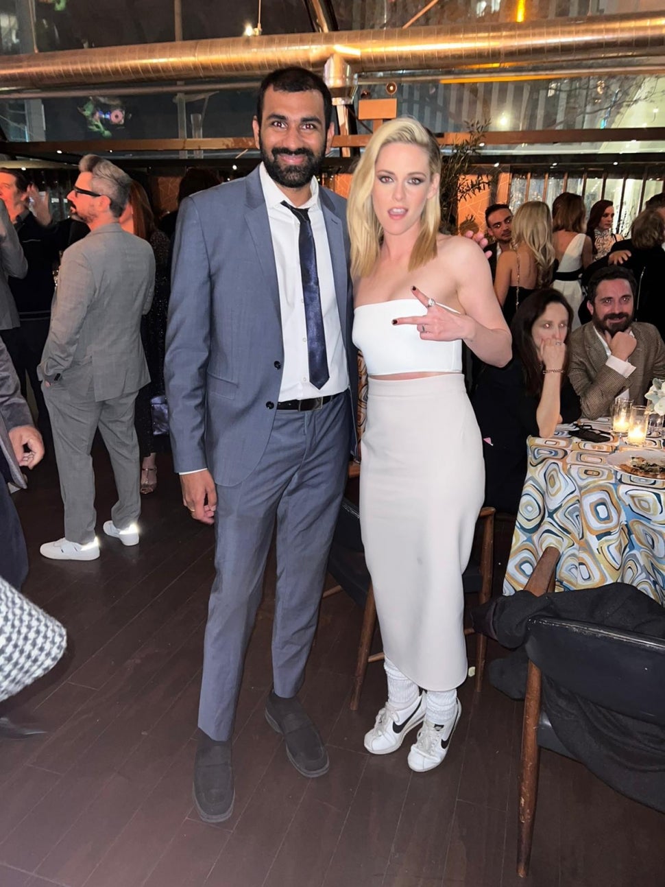 Producer Nitish Kannan posed with Kristen Stewart at The Hollywood Reporter's Oscars Nominees Night party at Spago in Beverly Hills, California.