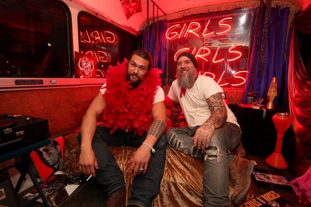 Jason Momoa and artist Blaine Halvorson channeled the band Kiss at Mastercard and Fred Segal Present Rock n Roll Holy Land: An Exclusive and Interactive Experience by MadeWorn exhibit in West Hollywood on April 10. The duo and guests like Gene and Nick Simmons and DJ Cassidy enjoyed a DJ set by Classixx and Moscow mules made with Absolut Elyx.