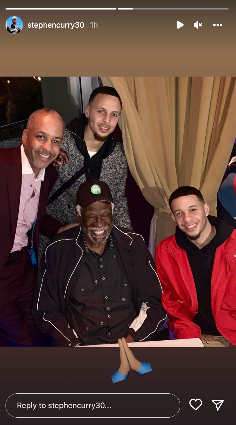 Curry also shared a photo of on his Instagram Story of his father, basketball star, Dell Curry and his brother, Brooklyn Nets guard, Seth Curry, alongside Russell. He wrote nothing besides the photo, simply adding a prayer hands emoji to the pic.