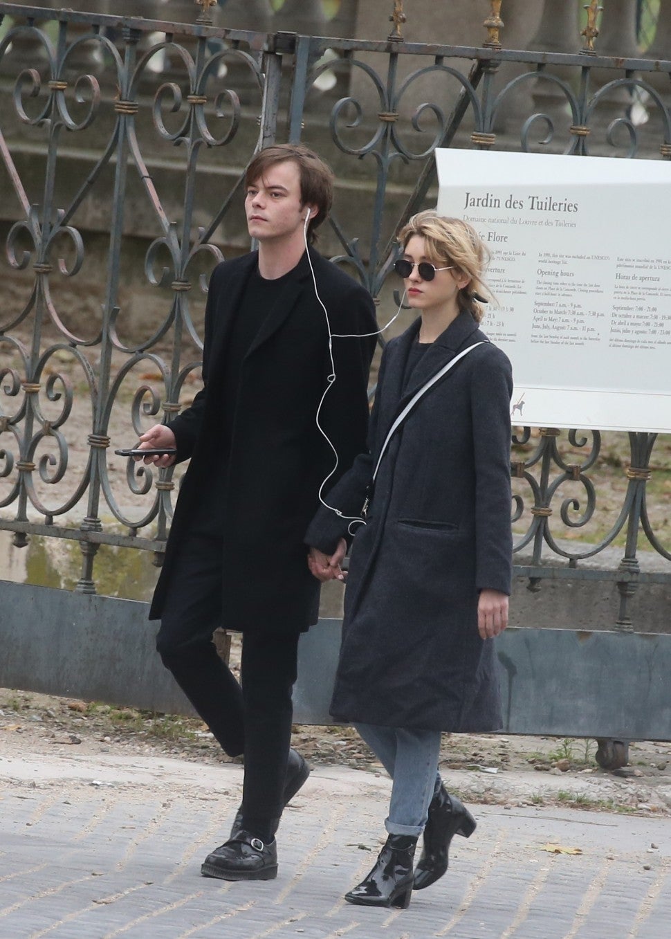 The Stranger Things-turned-real life couple stepped out in Paris on Tuesday, where they held hands and shared headphones, listening to what we can only presume is Jonathan's Spotify playlist.