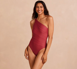 We love the one-shoulder style of this swimsuit made with tall women in mind. It has a flattering cut with superior compression and comes in five color combinations.
