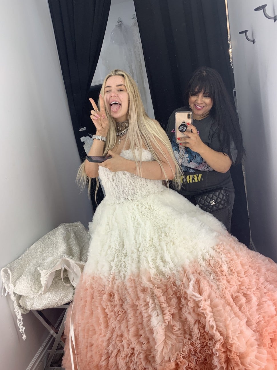 She loved it! She was like, 'I can't believe it!' She was so happy. In the pictures when we're both in the fitting room, clearly that dress was so big on her around the waist and she was already so happy even though it wasn't fitted. I loved that she was a visionary, she sees it beside what it is. Some brides can't picture the final dress on them without it being perfectly fitted, so that's why they don't choose a dress and go back and forth until it's perfect. And you can't have it perfect until you order it.