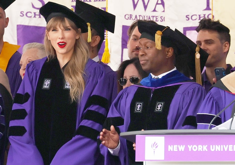 Prior to taking the stage, Swift celebrated the occasion on Instagram, posting a picture of her father capturing the moment, wearing her first cap and gown. “Wearing a cap and gown for the very first time - see you soon NYU 🥺🥰🗽,” the “All Too Well” singer wrote.