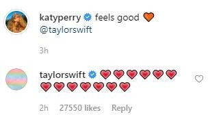 Shortly after the "Firework" singer shared the photo, Swift replied to the post with a slew of heart emojis.