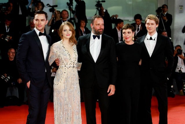The two posed together on the red carpet with co-stars Olivia Coleman and Nicholas Hoult as well as director Yorgos Lanthimos.
