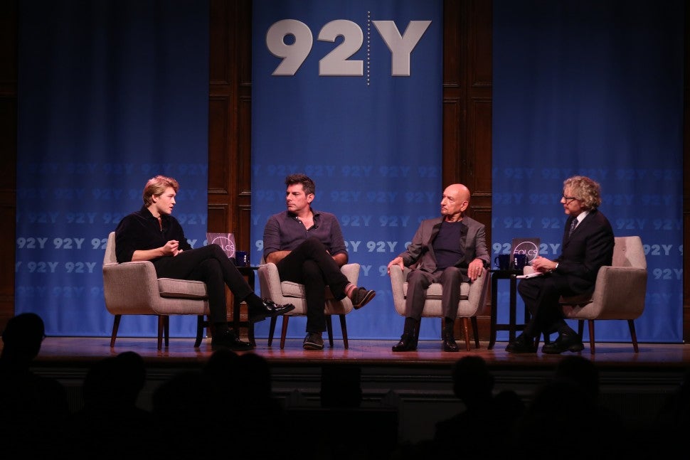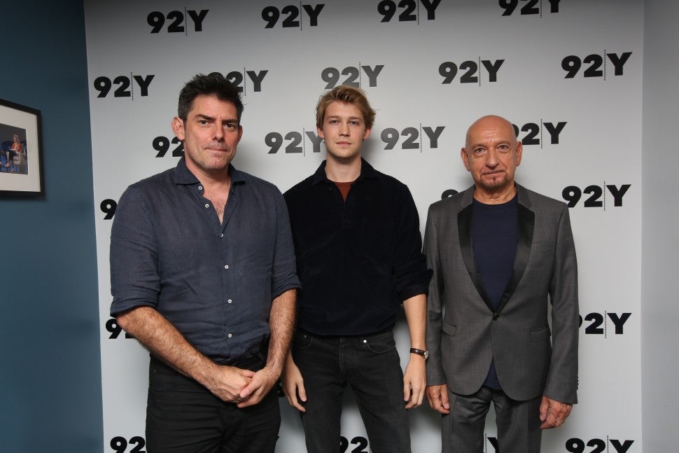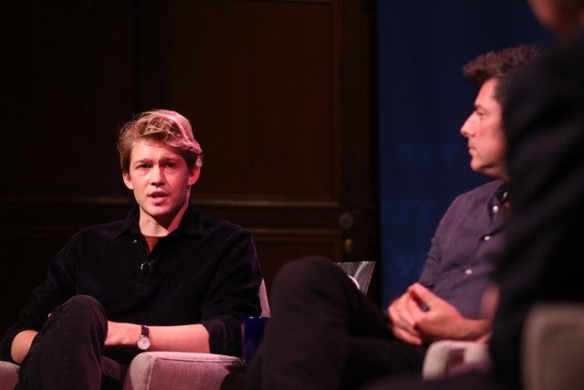 The 27-year-old British actor took a break from hanging with girlfriend Taylor Swift to promote his latest film, Operation Finale, during a talk at 92Y in New York City on Tuesday. Alwyn kept it casual in gray jeans, a red T-shirt and a dark pullover for the occasion. He was joined by Sir Ben Kingsley and Chris Weitz, the film's star and director respectively.