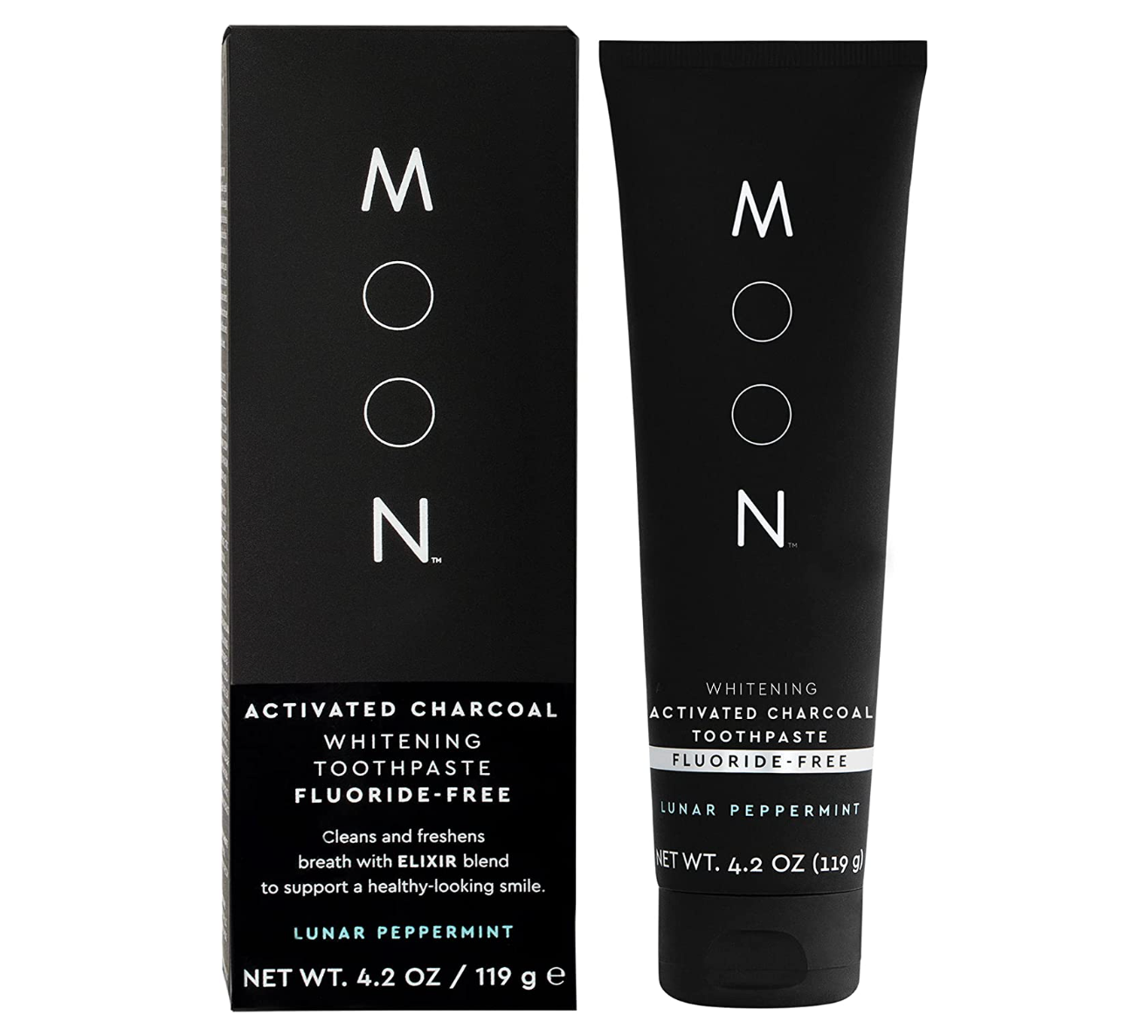 Moon's charcoal whitening toothpaste is another game-changing product. Its proprietary ELIXIR X blend of extracts and ingredients claims to whiten, brighten, and promote a healthier-looking smile without fluoride. Additionally, it contains vital ingredients including green and black tea, ginseng, echinacea, camu camu, cranberry and many more.