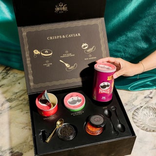 Caviar and potato chips — does it get any better? This gift set features Pringles Original, Sour Cream & Onion, and BBQ flavors to pair with Classic White Sturgeon Caviar and Smoked Trout Roe.