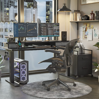 The adjustable height settings on this office desk help take productivity to new heights — literally.