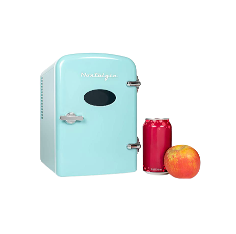 This cute mini refrigerator will be perfect for dorm life. It's compact enough for small spaces, holds six cans, and even has a built-in carry handle to take wherever they need to go.