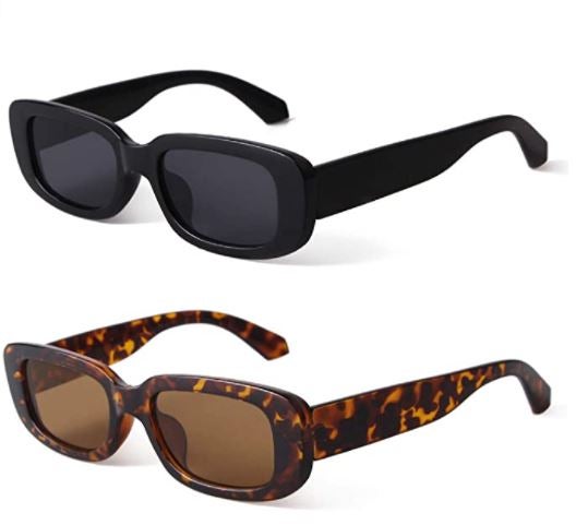Rock a retro look and block the sun from your eyes with a four-pack of rectangle sunglasses in green, white, black and tortoiseshell.