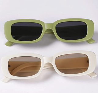 Rock a retro look and block the sun from your eyes with a four-pack of rectangle sunglasses in green, white, black and tortoiseshell.