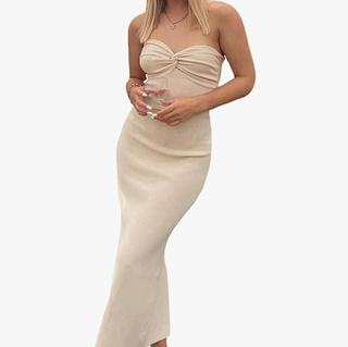 Sdencin Women Twist Knot Front Ribbed Knit Bandeau Dress