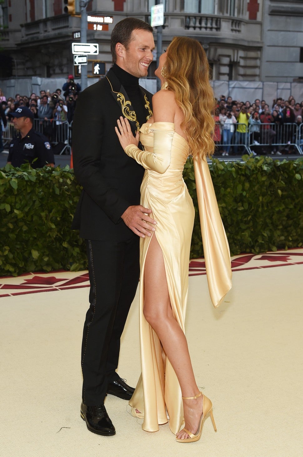 The elite quarterback and the supermodel are no strangers to the Met Gala over the years, but the two once again stood out, thanks to their coordinating gold Versace outfits.