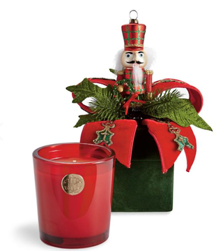 This gloriously radiant seasonal candle comes complete with a nutcracker-themed gift box.