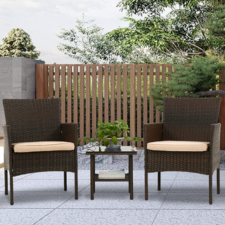 Save on Amazon's bestselling patio set, which includes two corner chairs, one armless chair, one ottoman chair and one glass coffee table.
