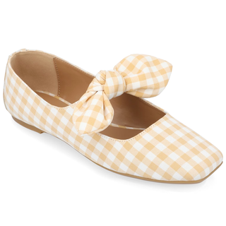 Gingham is summer's official pattern. You can get these flats with a super cute Mary Jane bow in tan (above), green, blue or black gingham print.