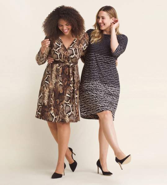 Sample of brands: ModCloth, Vince Camuto, City Chic, Adrianna Papell, Calvin Klein.