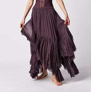 A flowing, billowy shape gives this maxi skirt a romantic look.