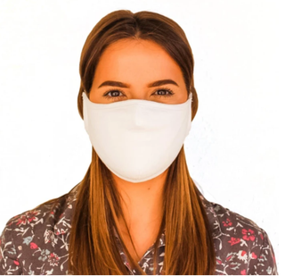 These one-piece masks are made from a soft, breathable cotton blend, which Custom Ink describes as similar to a stretchy T-shirt. They have a no-sew design, meaning they're produced with minimal human touch and feature ear holes rather than elastic bands or ties. This is not a disposable mask, but it is a limited-use mask.
