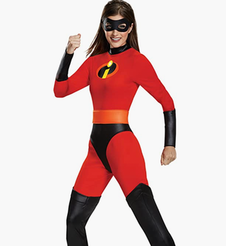 Become the iconic Mrs. Incredible for a night with this costume, featuring a jumpsuit, mask and belt.