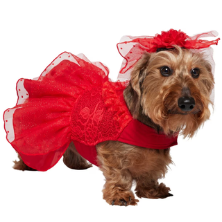 Frisco Red Ruffle Dog & Cat Dress + Headpiece