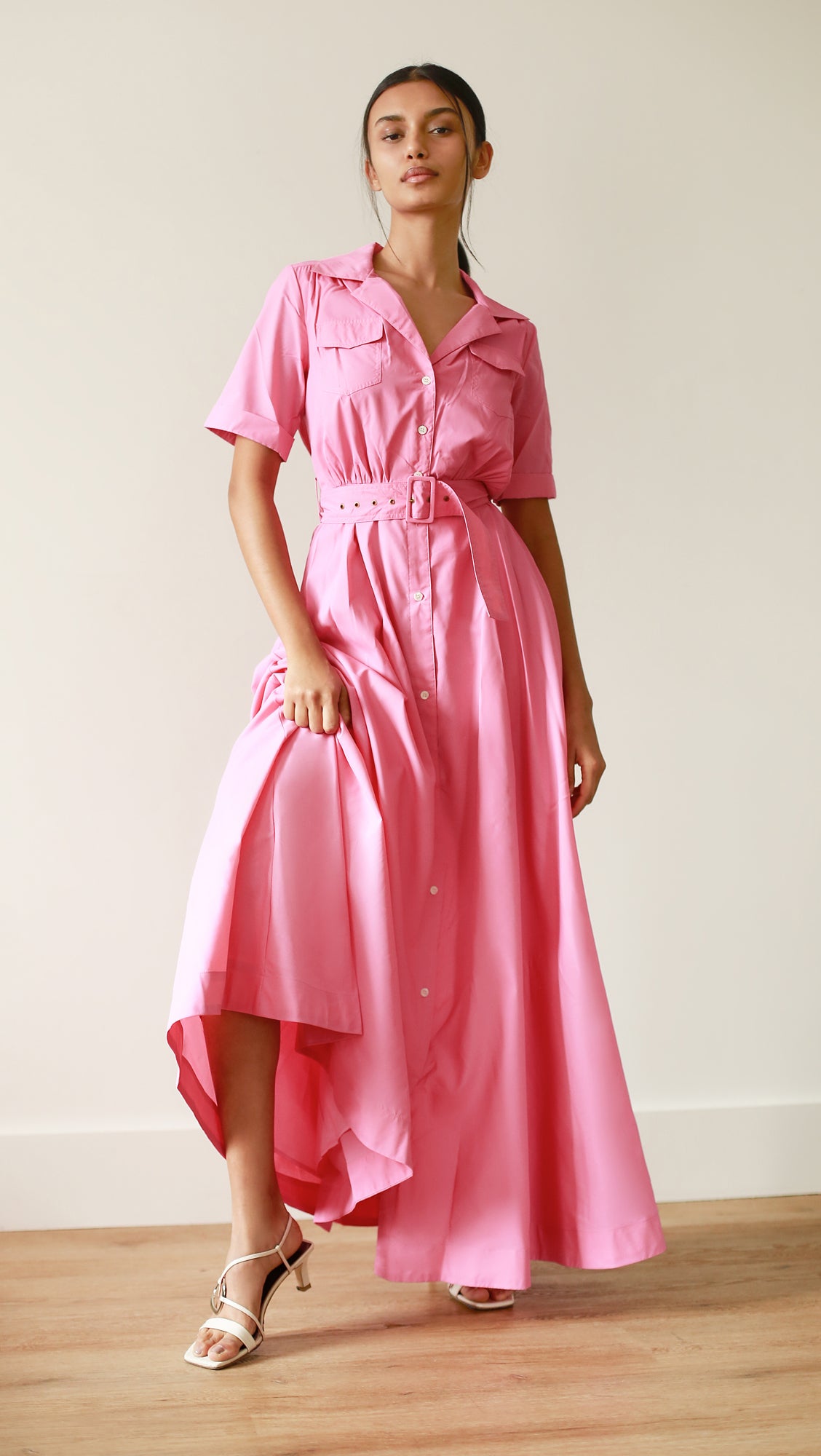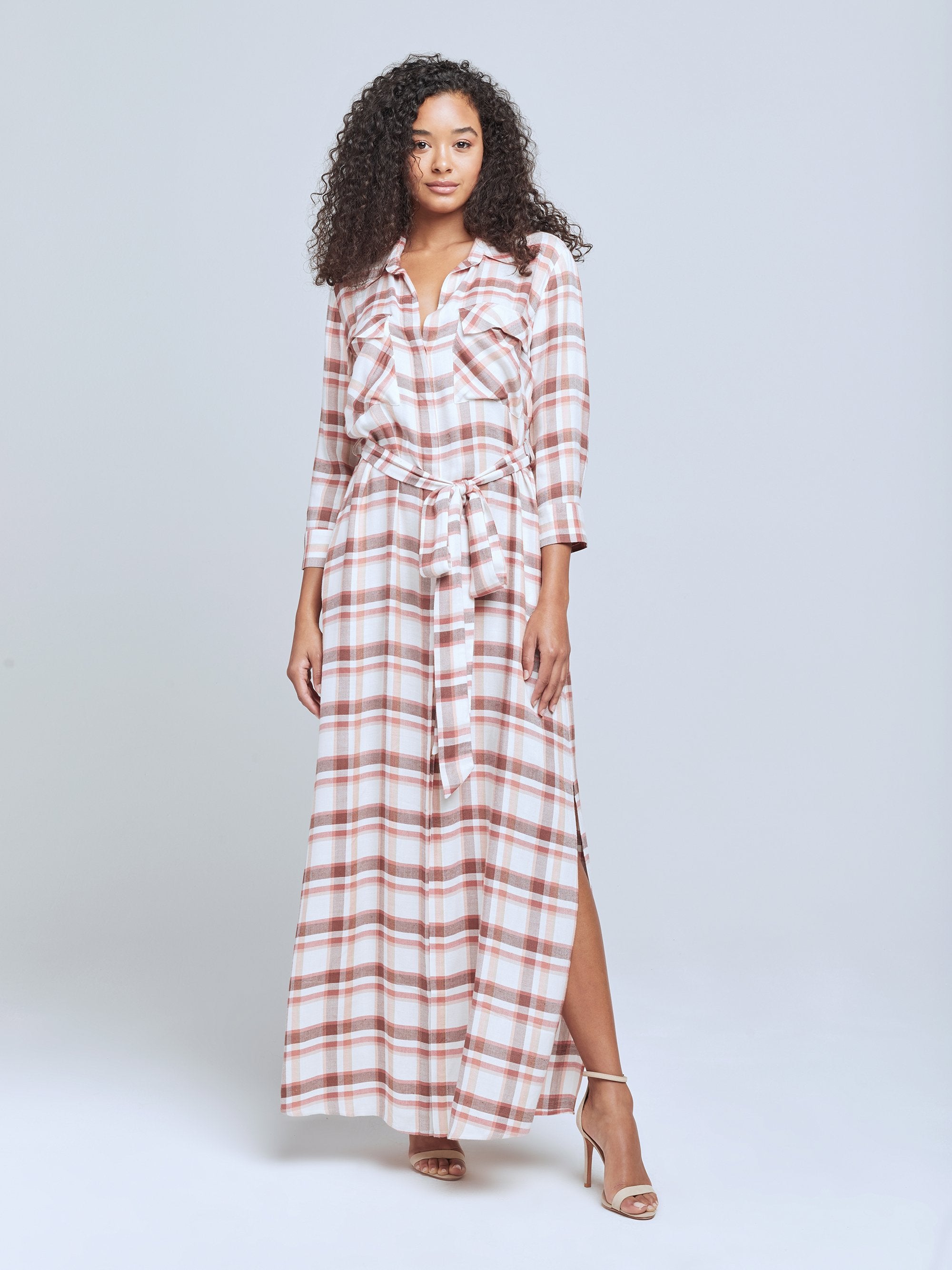 A midi shirtdress cinched with a waist belt is a go-to outfit formula for the SATC ladies. SJP wore a pink Carolina Herrera number cinched with a studded belt. Nixon opted for a plaid piece from L'Agence, which is on sale right now, and a brown waist belt.