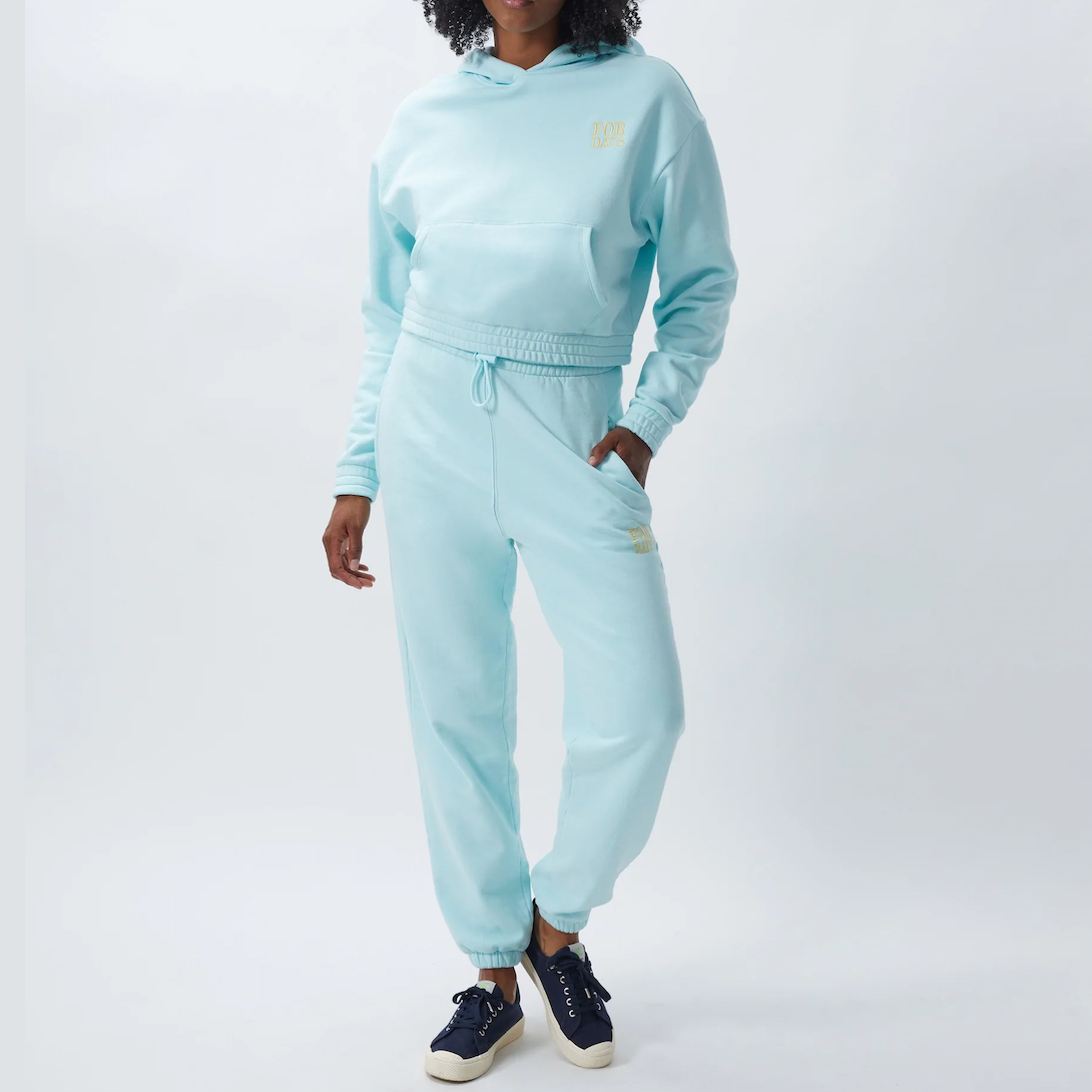 This ultra-soft sweatshirt with a cropped fit, dropped shoulder and raw edge details is about to become your new favorite hoodie. The matching joggers come with a charming racing stripe down the leg.