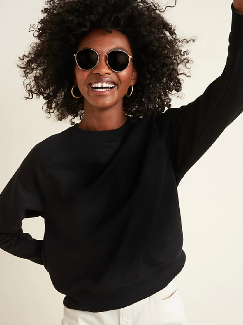 Cozy, cropped and cute. This sweatshirt hits the fashion trifecta, if bright colors are your thing.
