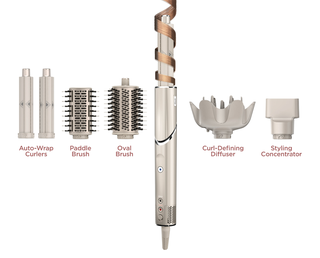 The Shark system for curly hair comes with two auto-wrap curlers, an oval brush, a styling concentrator, and a diffuser for gently defining your curls.