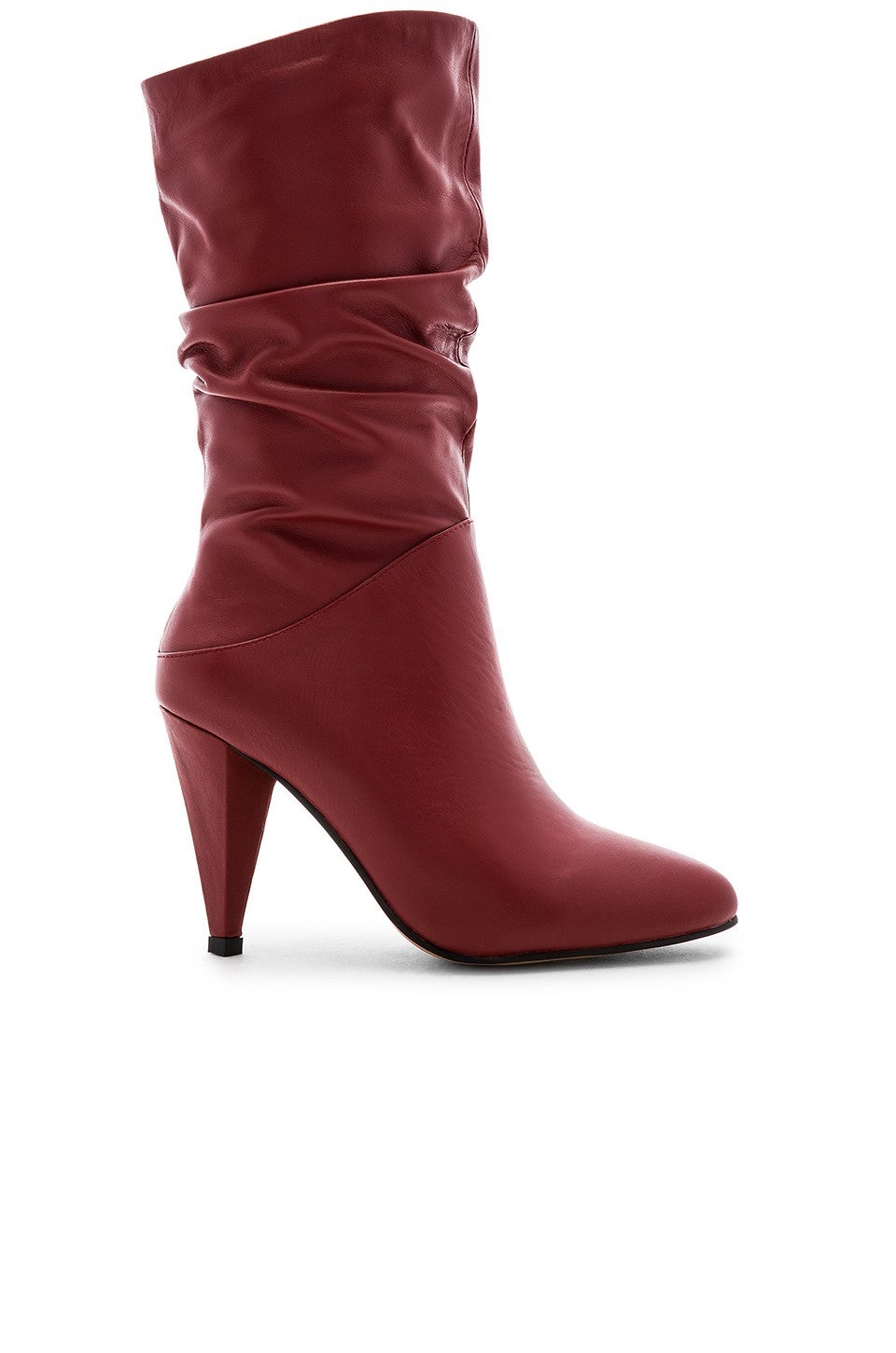 A slouchy boot is so chic and of-the-moment. Try a colored pair and match with a coordinating sweater, styled with a high-waist pant and camel coat.