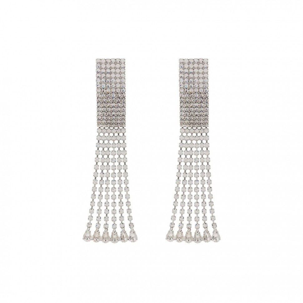 Alessandra Rich Silver Rectangular Crystal Drop Earrings $332