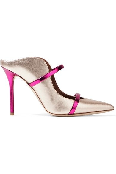 Malone Souliers Maureen 100 Metallic Leather Mules $595
