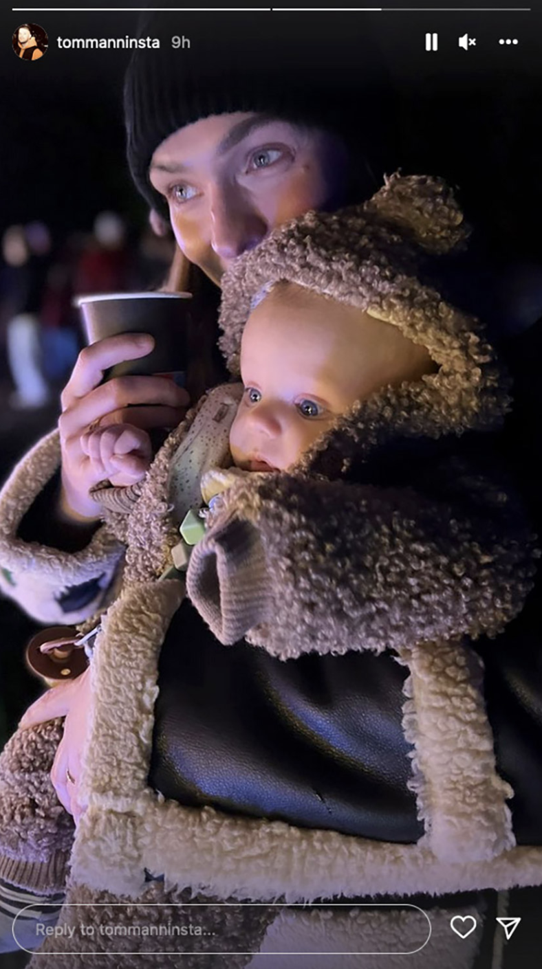 Mann also posted a picture of Hampson holding Bowie bundled in a bear onesie.