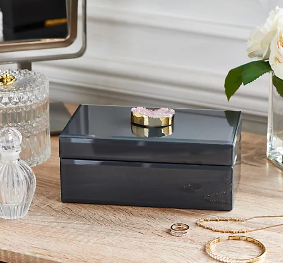 Use this decorative gemstone box to stash jewelry, letters and more — available in black or white.