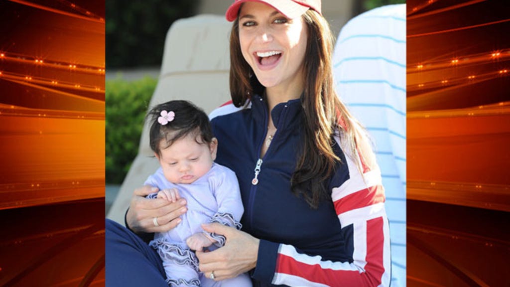 Adorable baby alert! Second-time mom, ET's Samantha Harris, cuddles with her brand-new baby Hillary Hess in this photo from their vacation.