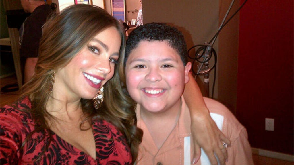 Sofia Vergara tweeted the above photo on Monday morning, posing with her on-screen son Rico Rodriguez, and writing, "First scene of the season!!! Back in LA for Modern Family!!!"