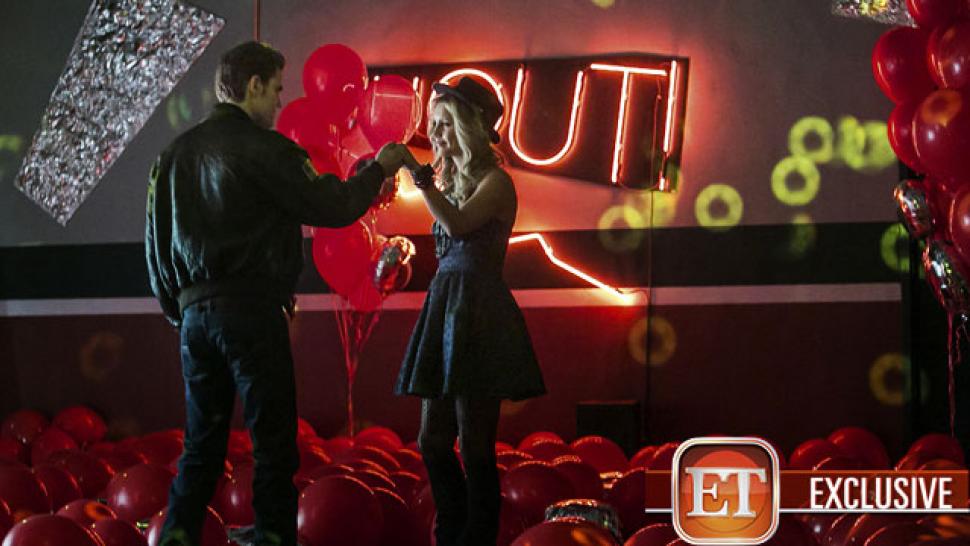 And as you can see from ETonline's exclusive first look photo, the two continue to get closer in this week's all-new episode, titled A View To A Kill. In fact, the ep sees Stefan showering Rebekah with his signature sweetness after Mayor Hopkins cancels the high school's 1980s Decade Dance and he finds a charming way to make it up to his disappointed dame.