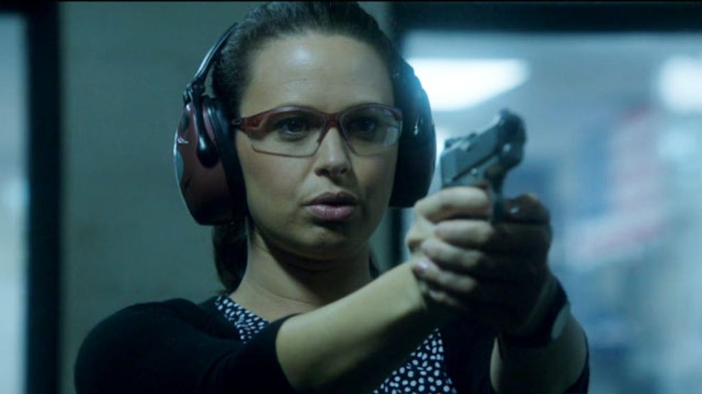 Lowes: I think she's still wide-eyed with that kind of thing. I think she's great at all the motor skills; she's good at hacking, can teach herself to shoot a gun in a day, can clean up crime scenes no problem and see problems that need fixing the same way Olivia or Huck would. But I think at the end of the day, she's a girl in her late 20s and when it comes down to it, her instinct is still to trust people at first so she doesn't think anything weird of Charlie helping her.