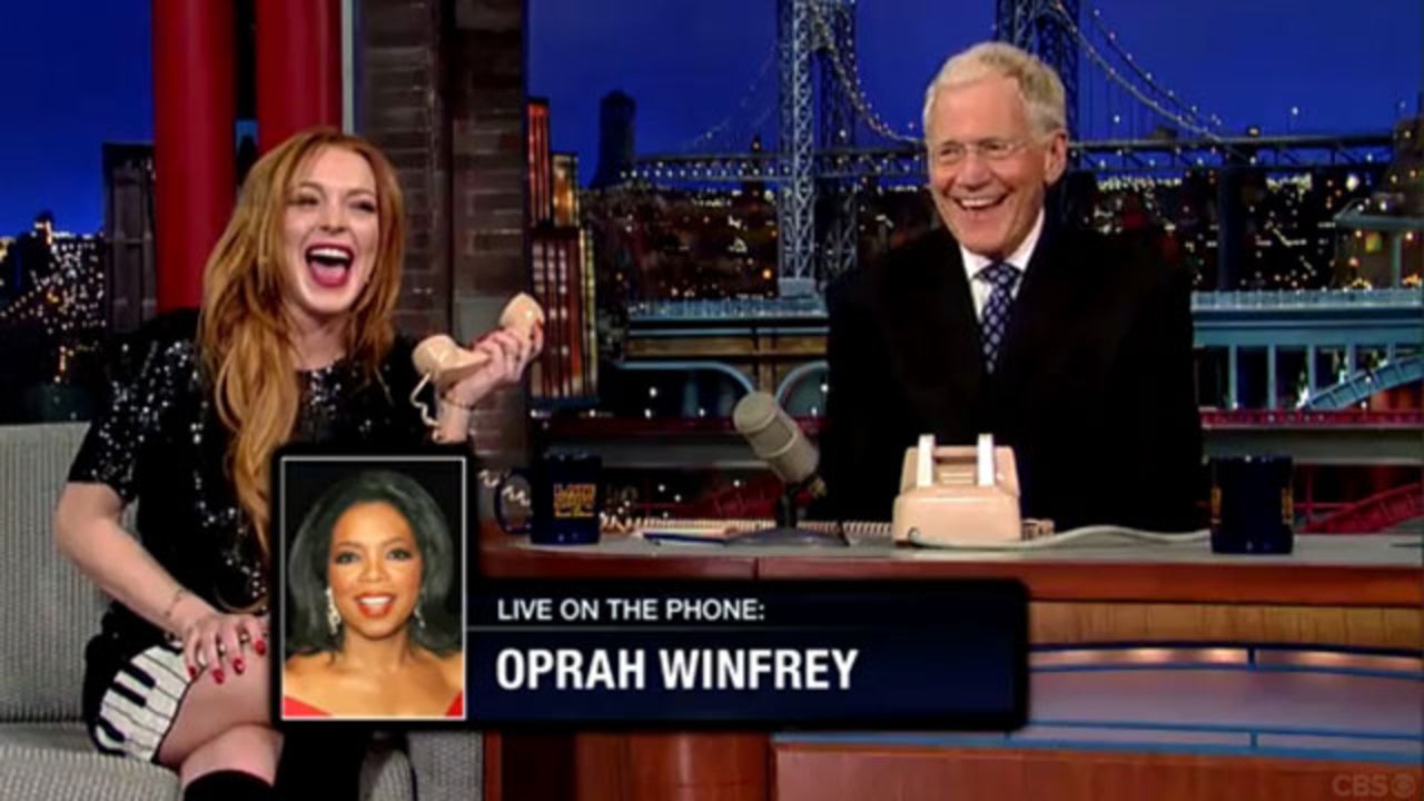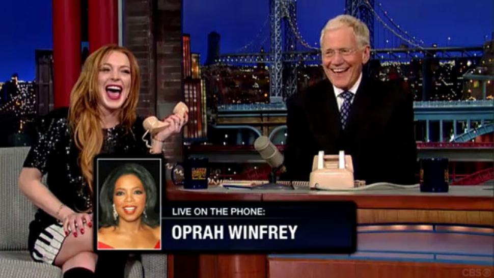 Letterman acquiesced, calling Oprah with a phony voice and pretending to be "Lindsay Lohan's secretary." The 66-year-old late-night host quickly dropped the charade, getting a laugh out of Oprah, who quipped, "Very good, Dave! The David Letterman who's retiring?"