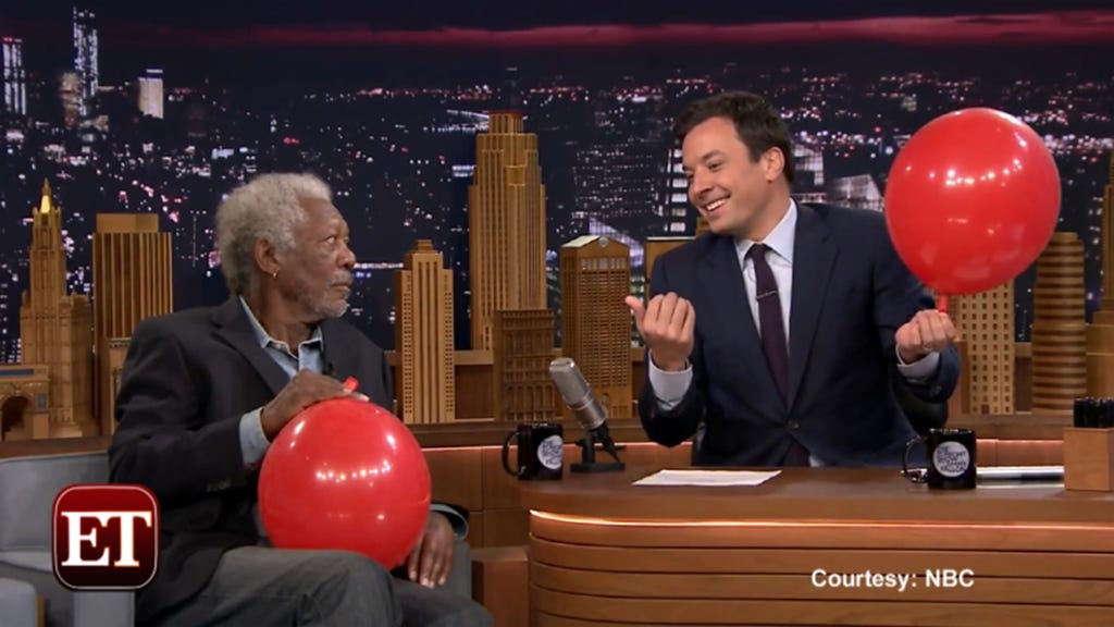 Somehow Jimmy Fallon talked Morgan Freeman into sucking down helium and going on with his interview on Thursday's Tonight Show.