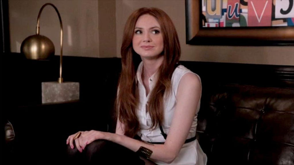 Would you rock booty-shorts and a garter belt in the office? Well if you’re Eliza Dooley (Karen Gillan), you would!