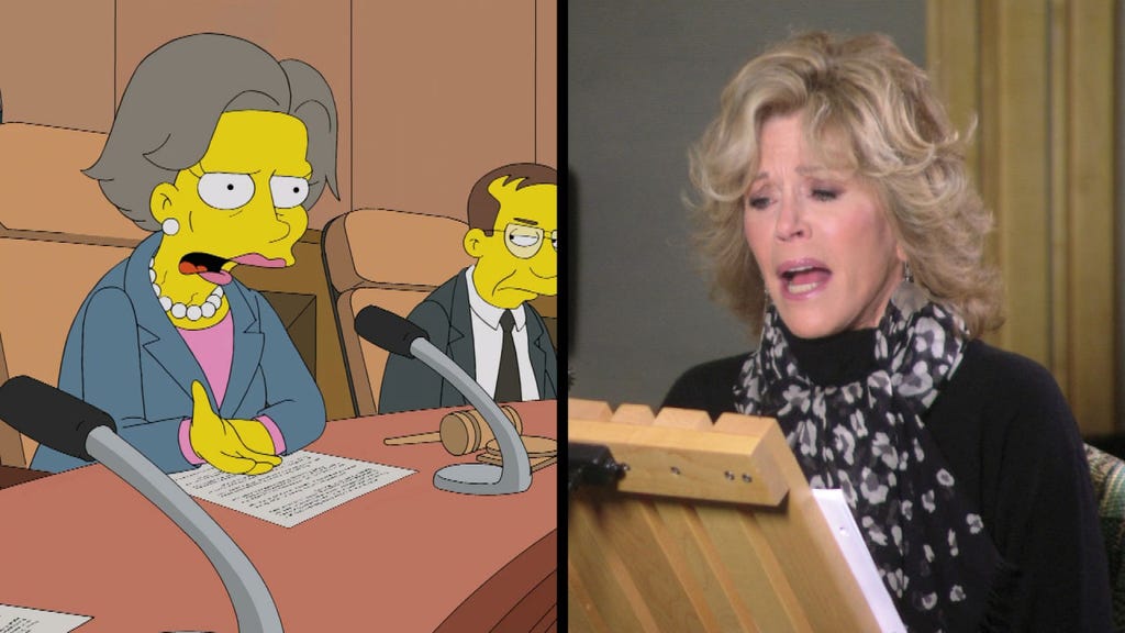 "Jane Fonda plays a character named Maxine Lombard, a liberal congress lady that Mr. Burns has a passionate affair with," said executive producer Matt Selman.