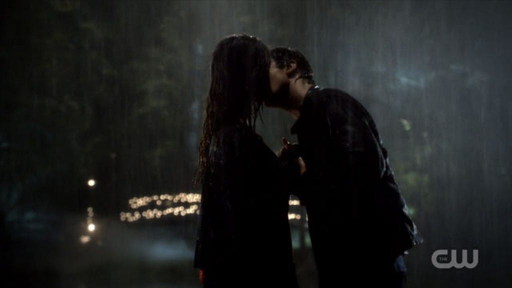 "It was raining and they're standing there talking to each other about rescuing Stefan, and that was one of those canon moments where people started really connecting with Damon and Elena as a potential couple." Plec continued, "[They] always called out that moment as like, 'Oh God one day they'll be in the rain, and they'll kiss.'"