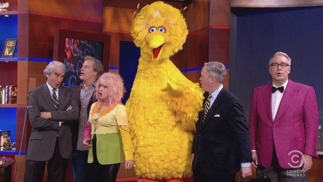 Jon Stewart (obviously), Bryan Cranston, James Franco (amid controversy surrounding The Interview), Big Bird, The Cookie Monster, George Lucas, Alan Alda, Patrick Stewart, Elijah wood, Vince Gilligan (still chained up in Colbert's basement), Bill Clinton, J.J. Abrams, Smaug the Dragon, Willie Nelson, Cindy Lauper, Wilt Chamberlin, and dozens of other celebrities, political pundits and politicians sang "We'll Meet Again."