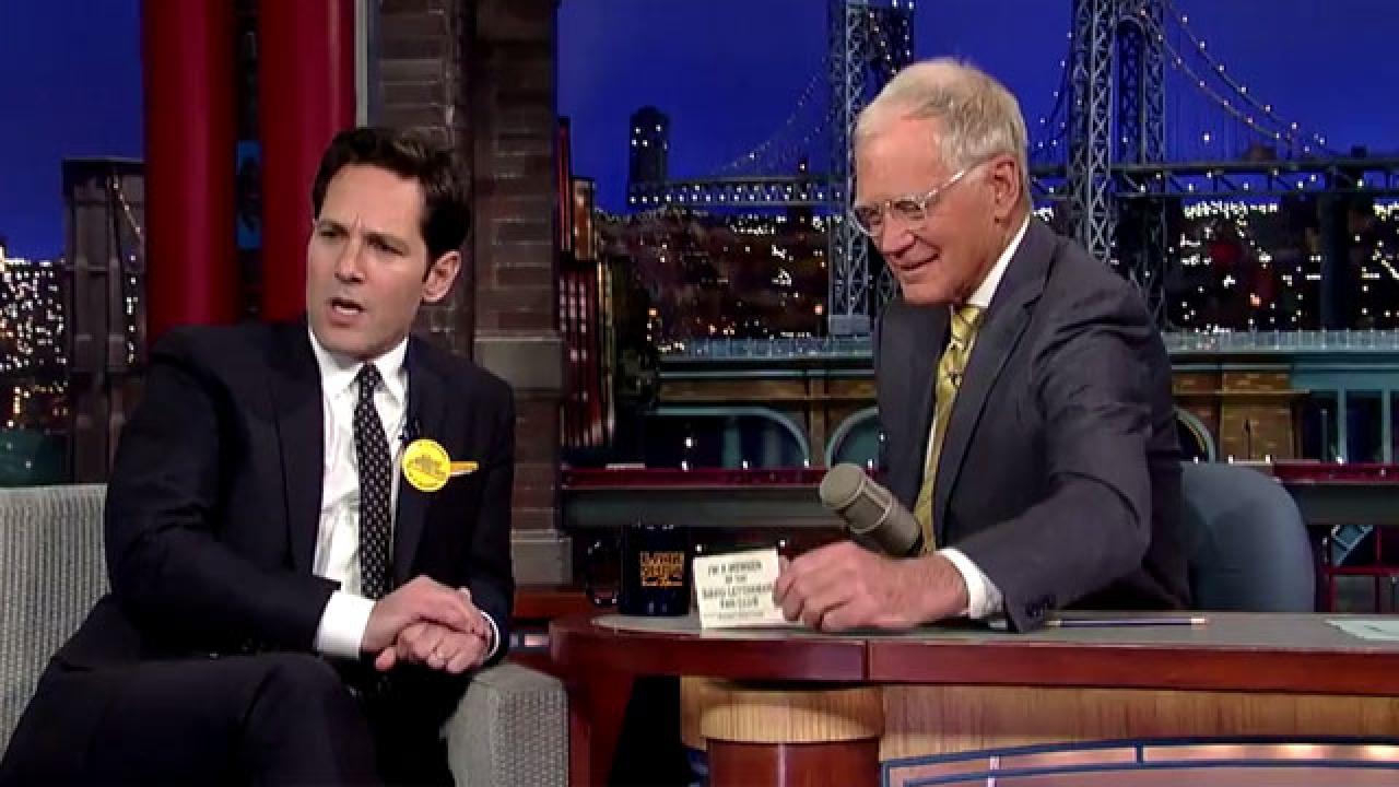 Paul Rudd was really vying for the title of David Letterman's biggest fan on Tuesday's Late Show.