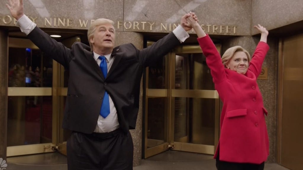 Baldwin, who has been guest-starring as Trump, has faced off against McKinnon's Clinton during every opening sketch this season, but for SNL's last episode before the general election on Tuesday, it was clear they wanted to do something a little different.