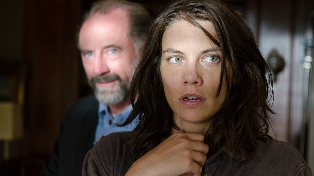 "This is our home now, so you'll learn to call me by my name," Maggie says after Gregory tries to give her and Sasha up to the Saviors (and steals the pocket watch recovered from Glenn's body). "Not Marcia, not Dear, not Honey. Maggie. Maggie Rhee," she snaps, delivering a killer punch to the center of Gregory's face and probably further rupturing her uterus. (Damn it, Maggie!) Ultimately, however, facing pregnancy complications and the devastation of Glenn's death makes Maggie stronger, able to move on and let go.