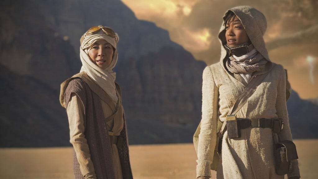 The new footage introduces Sonequa Martin-Green as USS Discovery First Officer Michael Burnham and Michelle Yeoh as Phillippa Georgiou, Captain of the Shenzou, a decade before Captain Kirk and the Starship Enterprise.
