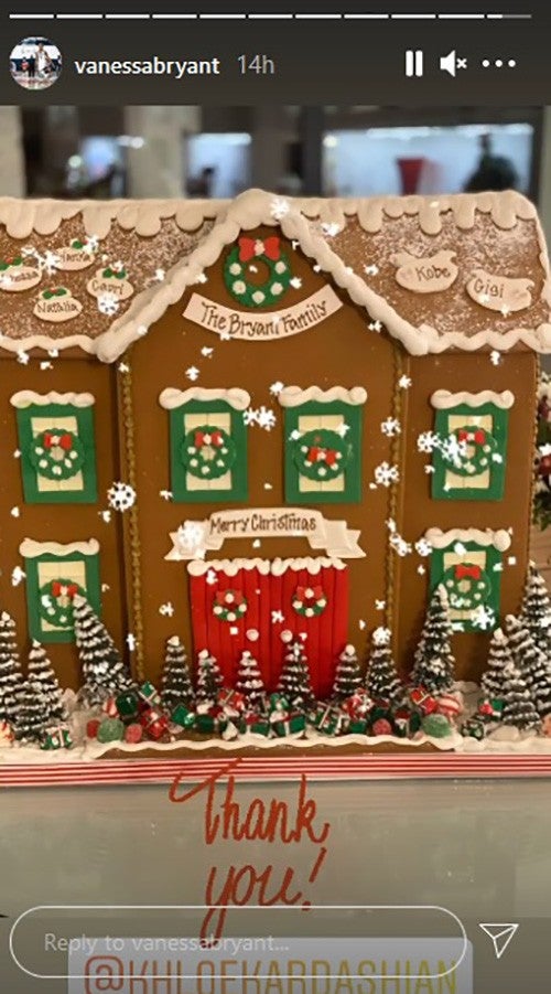 Vanessa Bryant showed the thoughtful gift her friend Khloe Kardashian gave her for Christmas on her Instagram Stories on Tuesday, an intricate gingerbread house that included a touching tribute to Vanessa's late husband, Kobe Bryant, and her late daughter, Gianna Bryant.